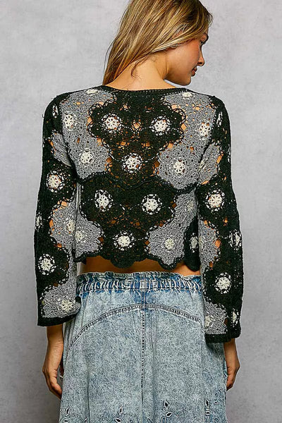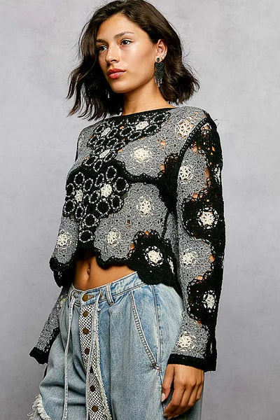 Discover effortless elegance with this Floral Weave Pattern Crochet Cropped Top. Handcrafted details showcase delicate floral motifs woven throughout, while strategically placed beads add a touch of refined sparkle. The relaxed silhouette and long sleeves provide all-day comfort without compromising style. Perfect for layering or wearing solo, this bohemian-inspired piece transitions seamlessly from casual outings to evening gatherings. Elevate your wardrobe with a top that celebrates artisanal craftsmanship and timeless femininity. Ships free from the U.S. Estimated delivery time: 4- 7 business days. 126NLCTRE7792429816