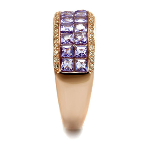 Rose Gold 925 Sterling Silver Ring with AAA Grade CZ in Amethyst